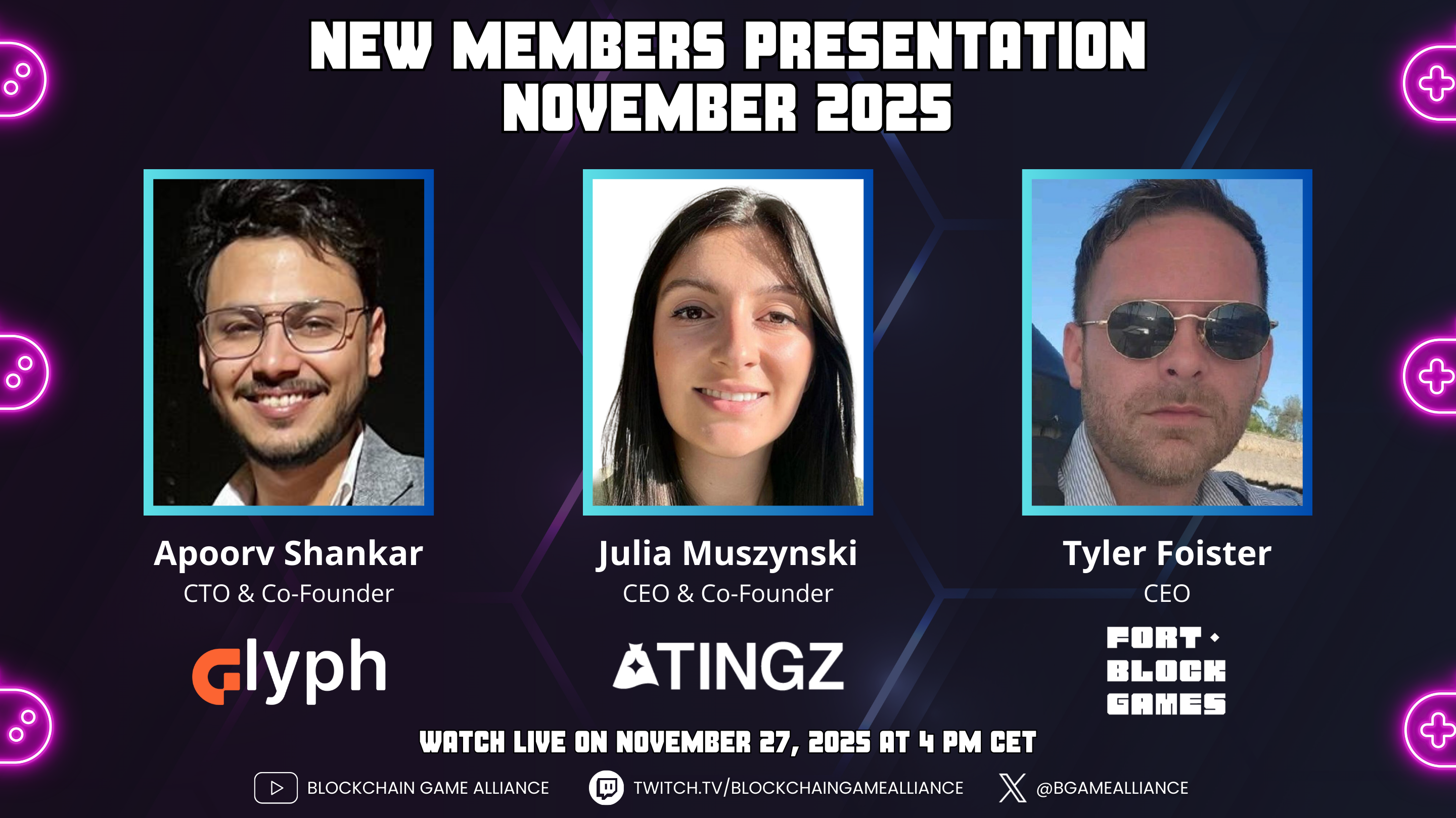 On Thursday, November 27th at 4 PM CET, we will share our stage with our new members who joined the Blockchain Game Alliance recently: